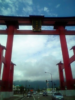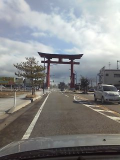 弥彦神社の大鳥居は30mで、日本一デカイ