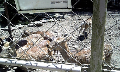 神社の中。鹿やニワトリさんが居るよ